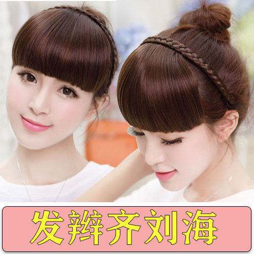 前髪のかつらの女性の魚の骨のお下げの空気の前髪のかつらのカチューシャは自然にリアルです。