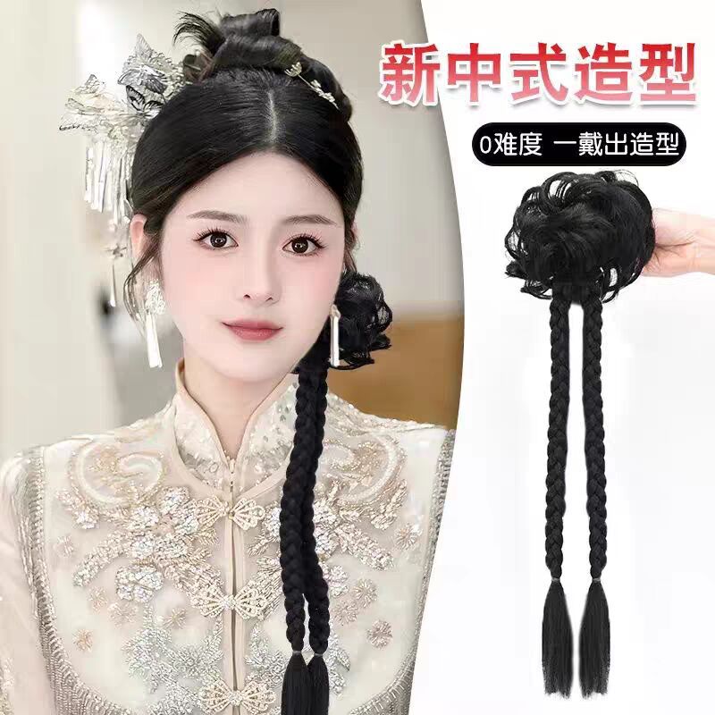 新商品の古風の団子の頭のかつらは女性の新しい中国式のポニーテールのお下げの麻のお下げのシミュレーションを包んでボクシングのお下げのポニーテールを出します。