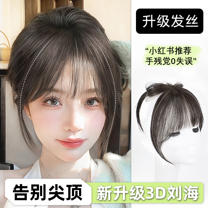女性用3Dフレンチエア前髪ウィッグ、自然で跡が残らない増毛、頭頂部の人工毛、白髪をカバーするウィッグ
