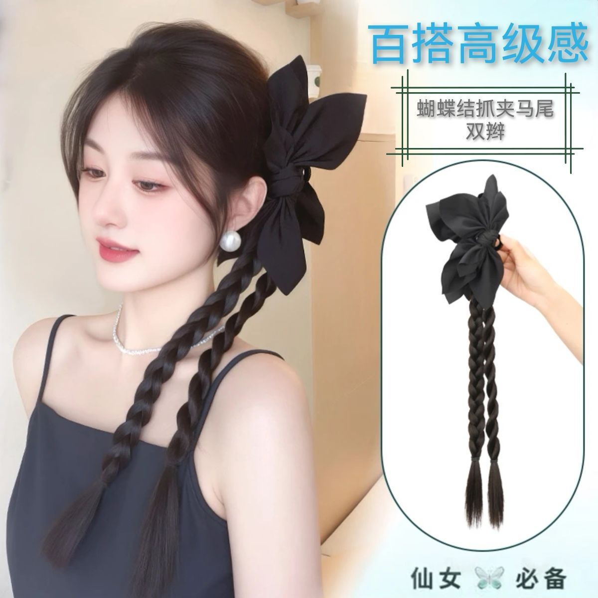 新しい中国風のかつらポニーテール女性のグリップクリップ水の波紋古代スタイルの漢服三つ編み人工毛チャイナドレス中国風ポニーテール三つ編み