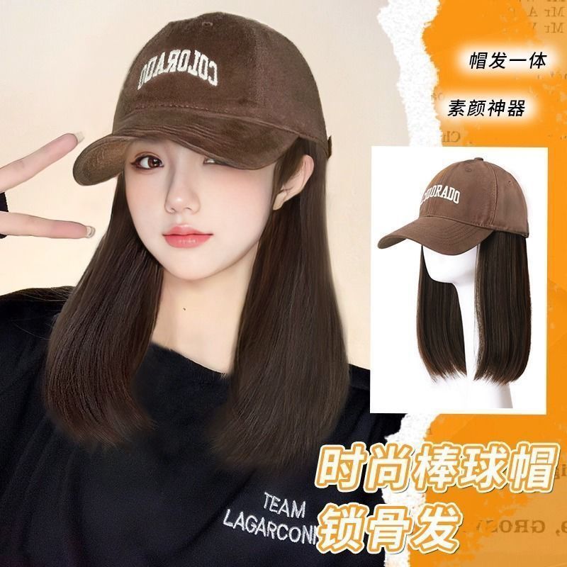 野球帽かつら一体女性内に鎖骨髪の全頭カバーをかけて、四季を通じてネットの赤いアヒルの舌帽子のかつらをかぶることができます。