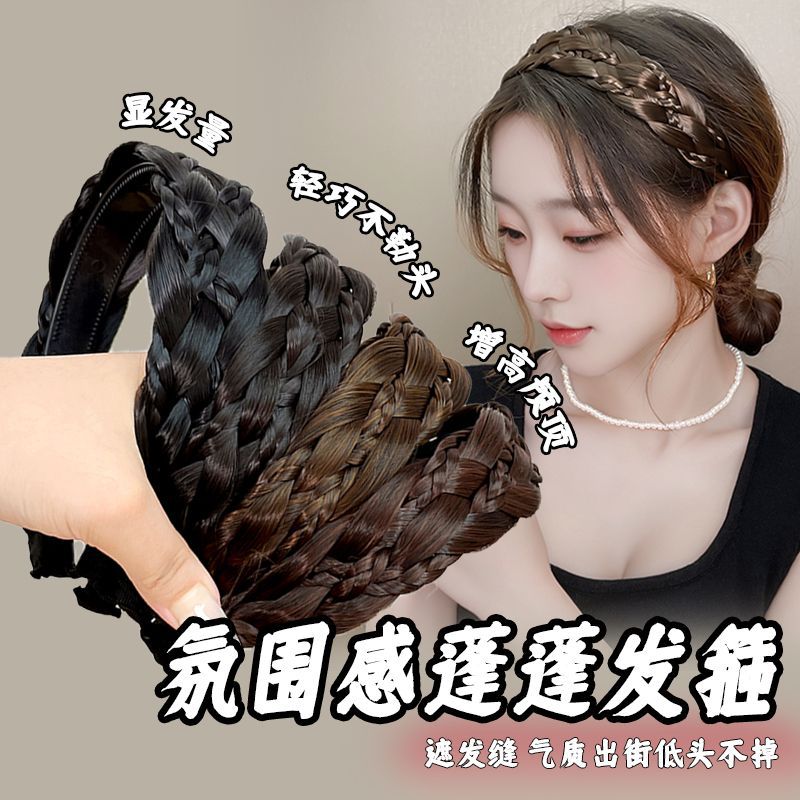 ウィッグヘアフープ、サンドイッチブレードヘアピン、幅広アートスタイルヘアアクセサリー、麻ひも編み込み、純手編み、高頭囲ヘアフープ
