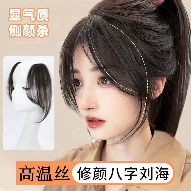かつらの女性の斜め前髪は顔を修理して年齢を減らします前髪の切れを減らします。