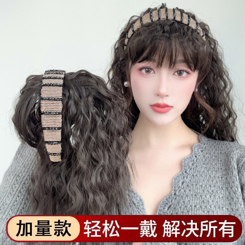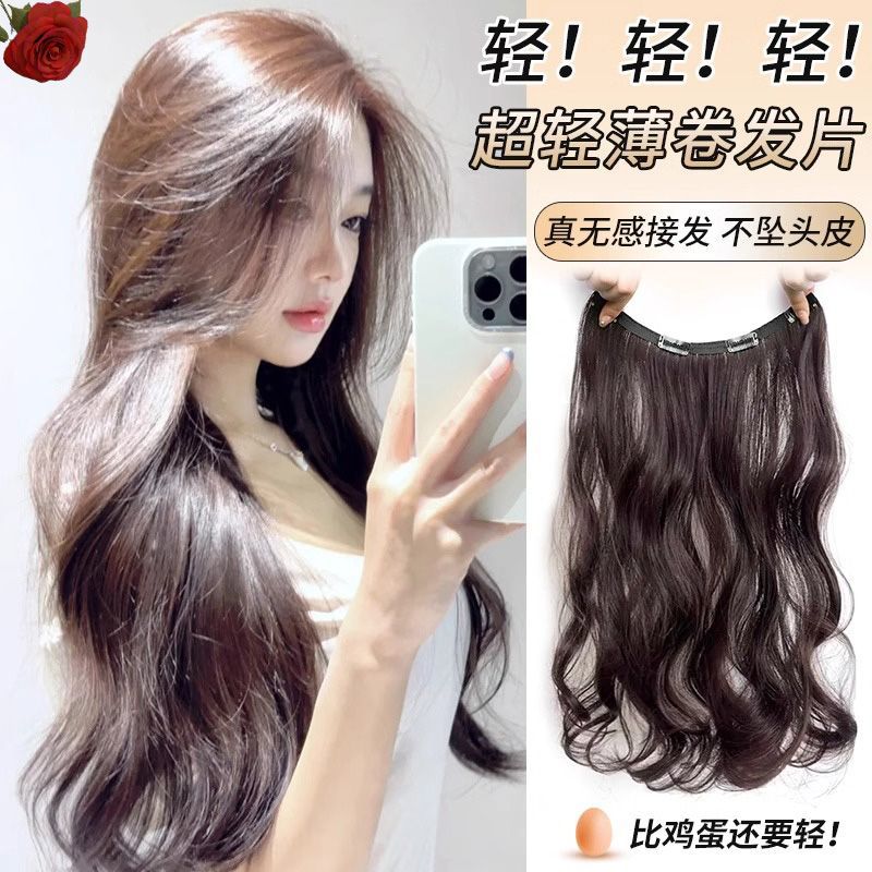 ウィッグピース、ワンピースウォーターリップルU字型ヘアエクステンション、ふわふわ増毛、フレンチロングカーリーヘア、目に見えないシームレスウィッグ