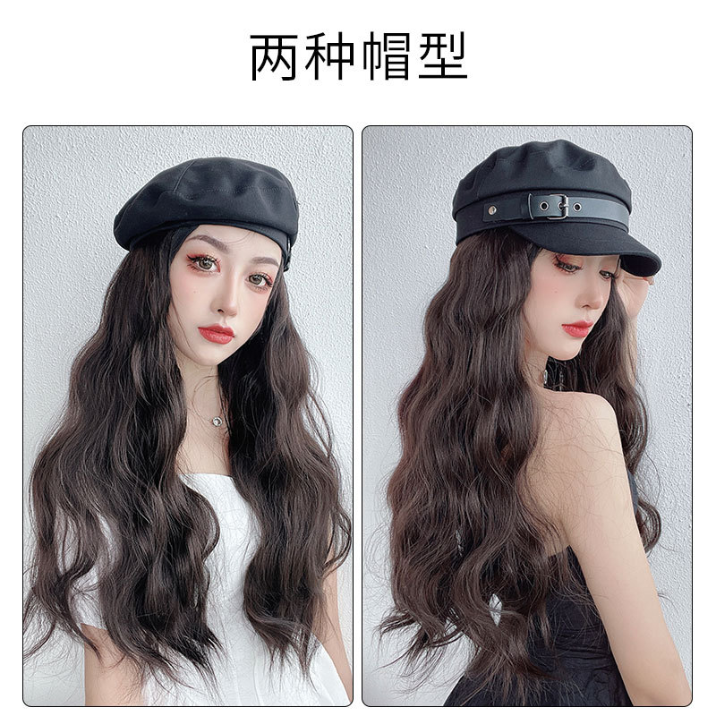 かつらの女性の長いストレートかつらの帽子の一体の女性のファッションの長い巻き髪の海軍の帽子のベレーのかつらの全頭カバー