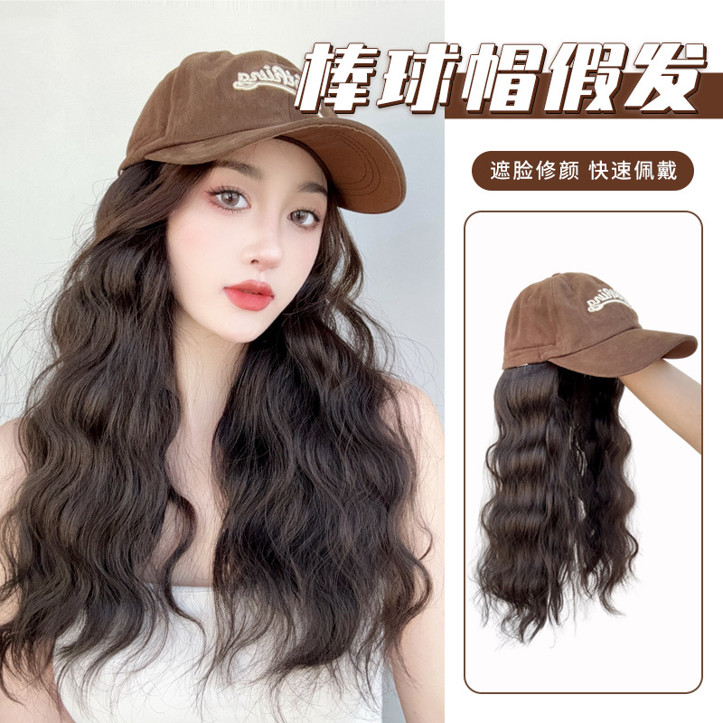 帽子とウィッグが一体化したアップグレード版、人工毛、ファッショナブルでゆったりとしたウールカーリーヘア、新バージョンのつばが大きめの帽子とウィッグ、フルヘッドカバー