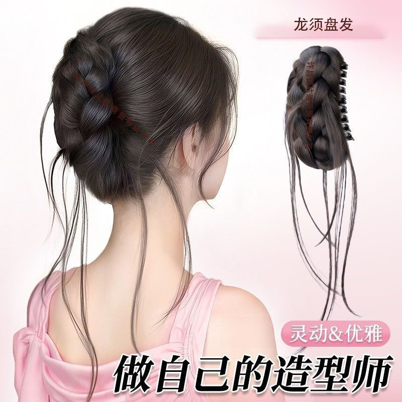 女性用ウィッグヘアフープ、新しいスタイル、頭蓋骨を高めるひょうたん三つ編み、完全な人毛を模倣、シームレスなサンドイッチフィッシュボーン三つ編みヘアフープ