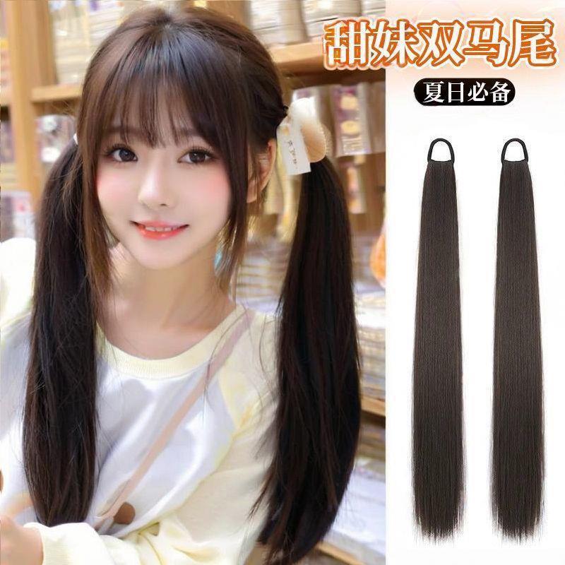 ロングストレートかつらのポニーテールの女性の韓国系の高低はポニーテールを刺します。