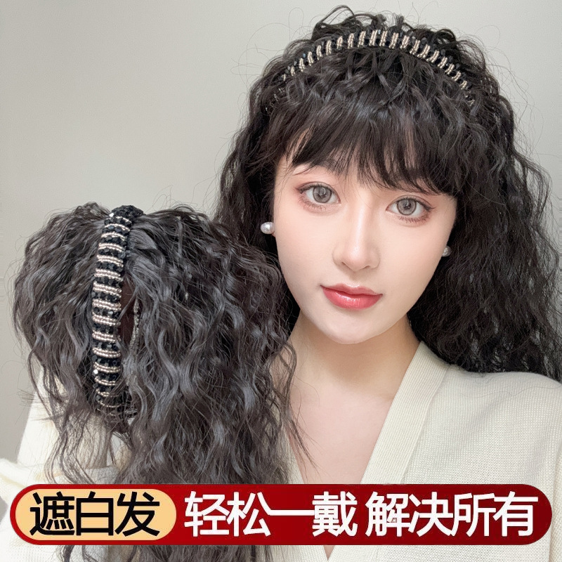 手で作った魚の骨のお下げのかつらのカチューシャは幅を広げて厚いかつらのカチューシャの瓢箪のお下げのカチューシャの女性は白髪をかぶせます。