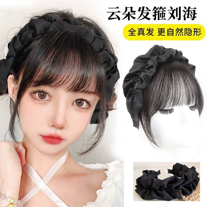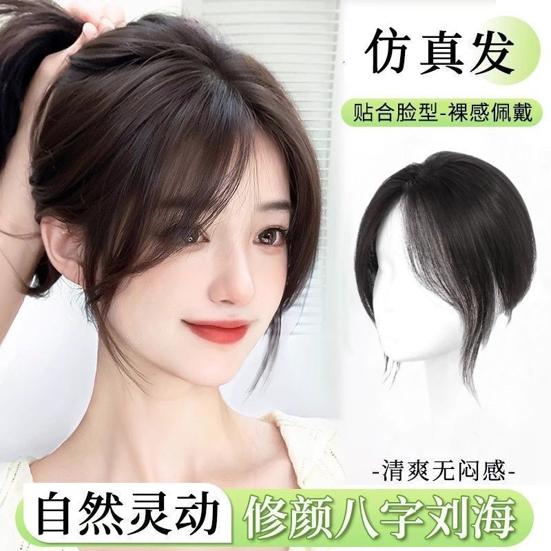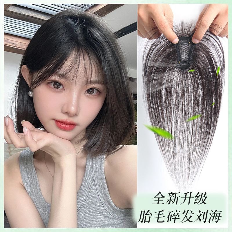女性用フルリアルヘアエア前髪ウィッグ、薄くて跡が残らない、自然な頭頂部、ネットセレブ偽前髪ウィッグ