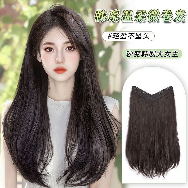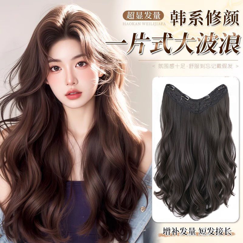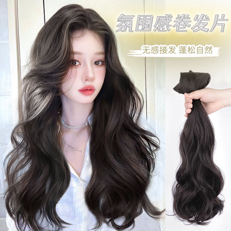 ワンピースビッグウェーブ女性のロングヘア目に見えないシームレスなU字型ヘアエクステンション人工毛ふわふわ増毛カーリングパッチ