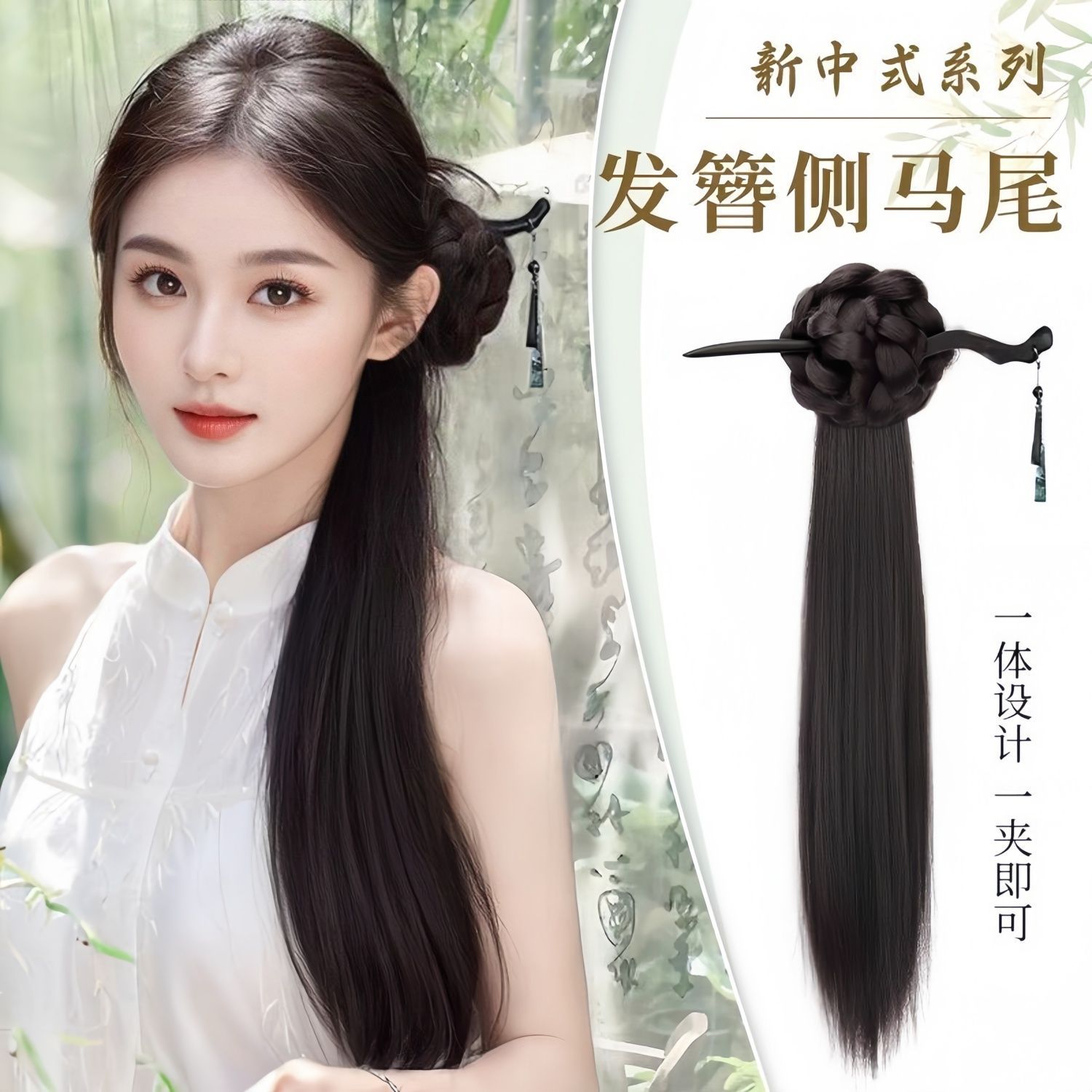 新しい中国風のかつらヘアピンサイドポニーテール中国風ボール一体型グリッパー古代スタイルのヘアアクセサリー漢服チャイナドレスかつら三つ編み
