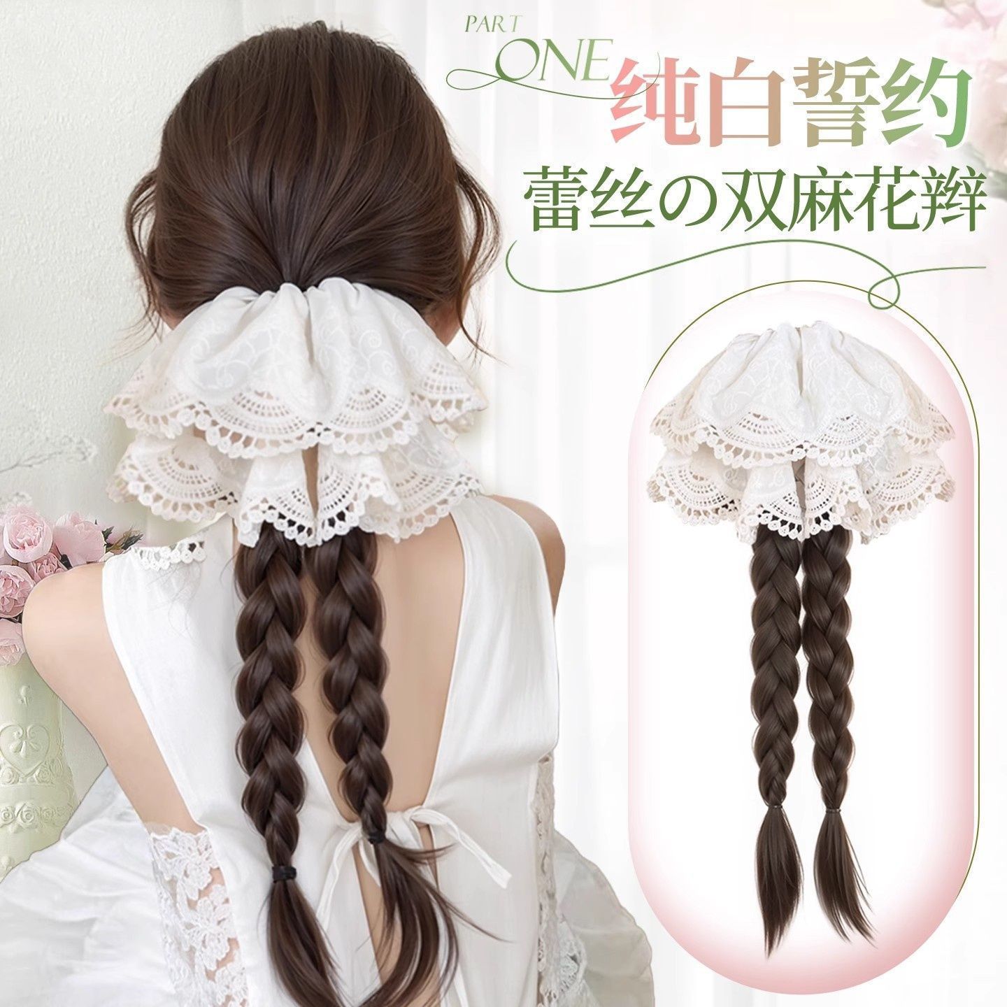 ウィッグ三つ編み女性フレンチグリップクリップローポニーテールレースダブルツイストロング三つ編み人工毛ウィッグポニーテール
