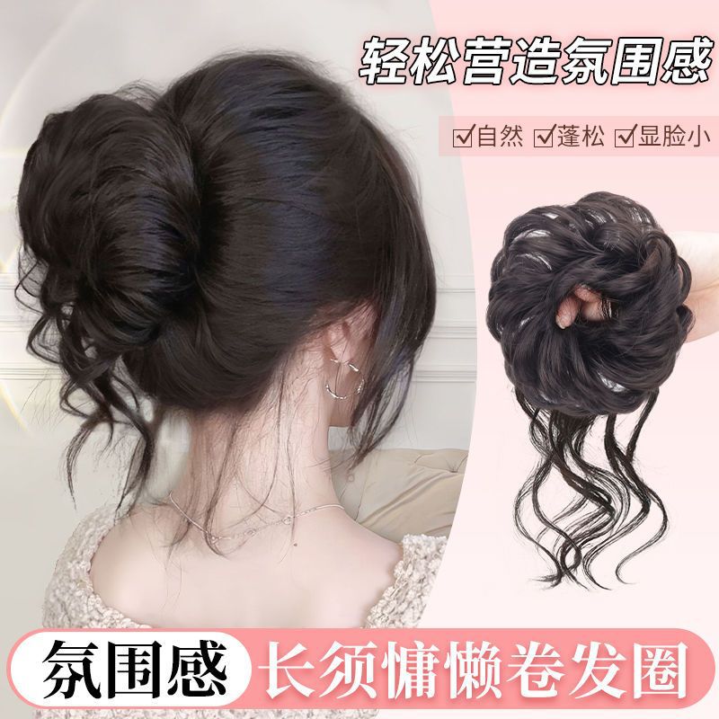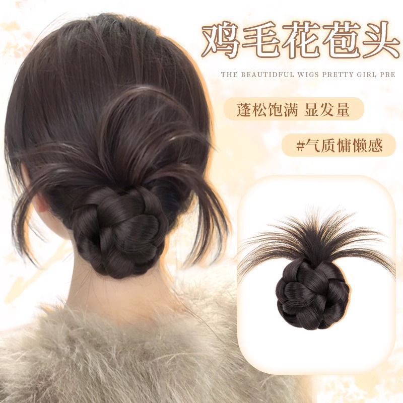 女性用ロータイチキンヘアボールヘッド、人工毛クリップオンウィッグ、花のつぼみヘッド、自然なふわふわヘアアーティファクトウィッグバッグ
