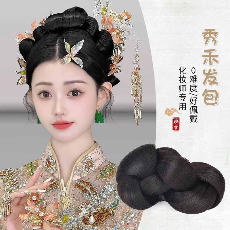 秀禾の完成品のかつらは漢服の中国式の花を包みます。