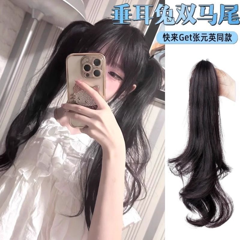 プリンセスヘッド垂れ耳ウサギの小さなクリップダブルポニーテール女性かわいい超軽量ナチュラルふわふわミッドレングス両サイドダブルポニーテール