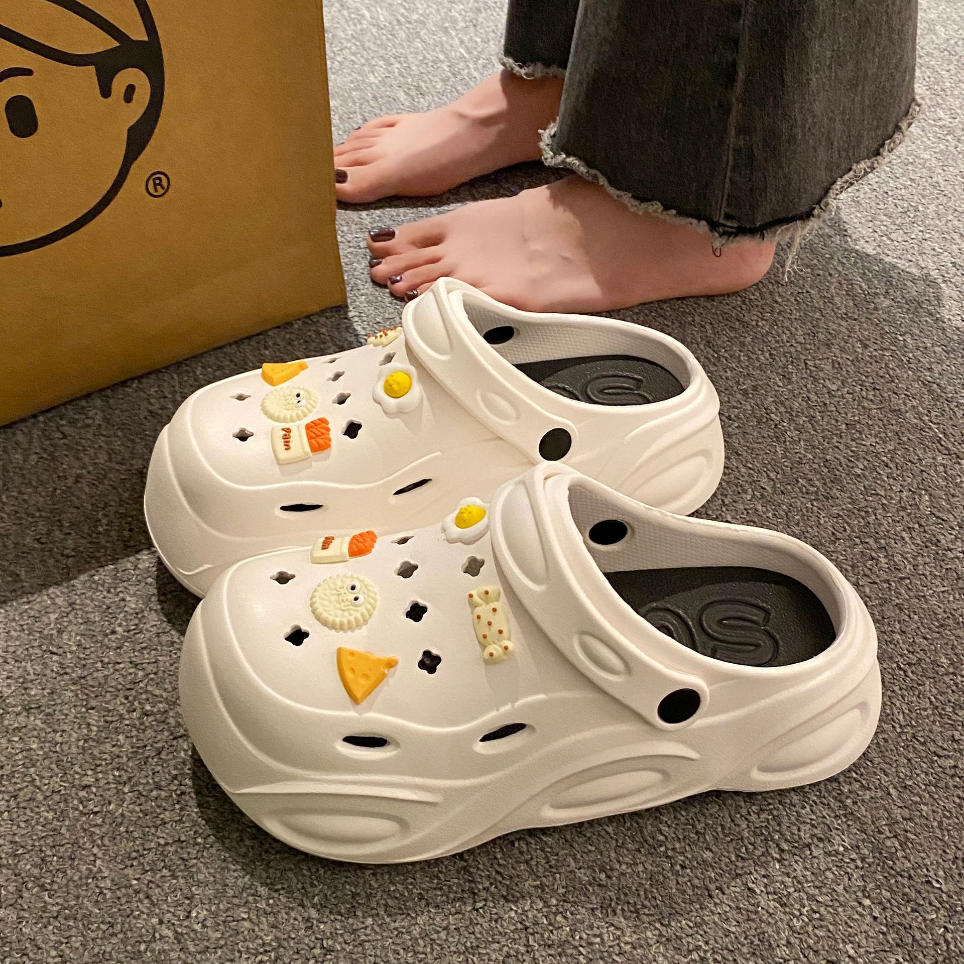 2024新型ファッションネット赤通気性超厚い底洞靴少女は夏に滑り止め防臭サンダルを履いている