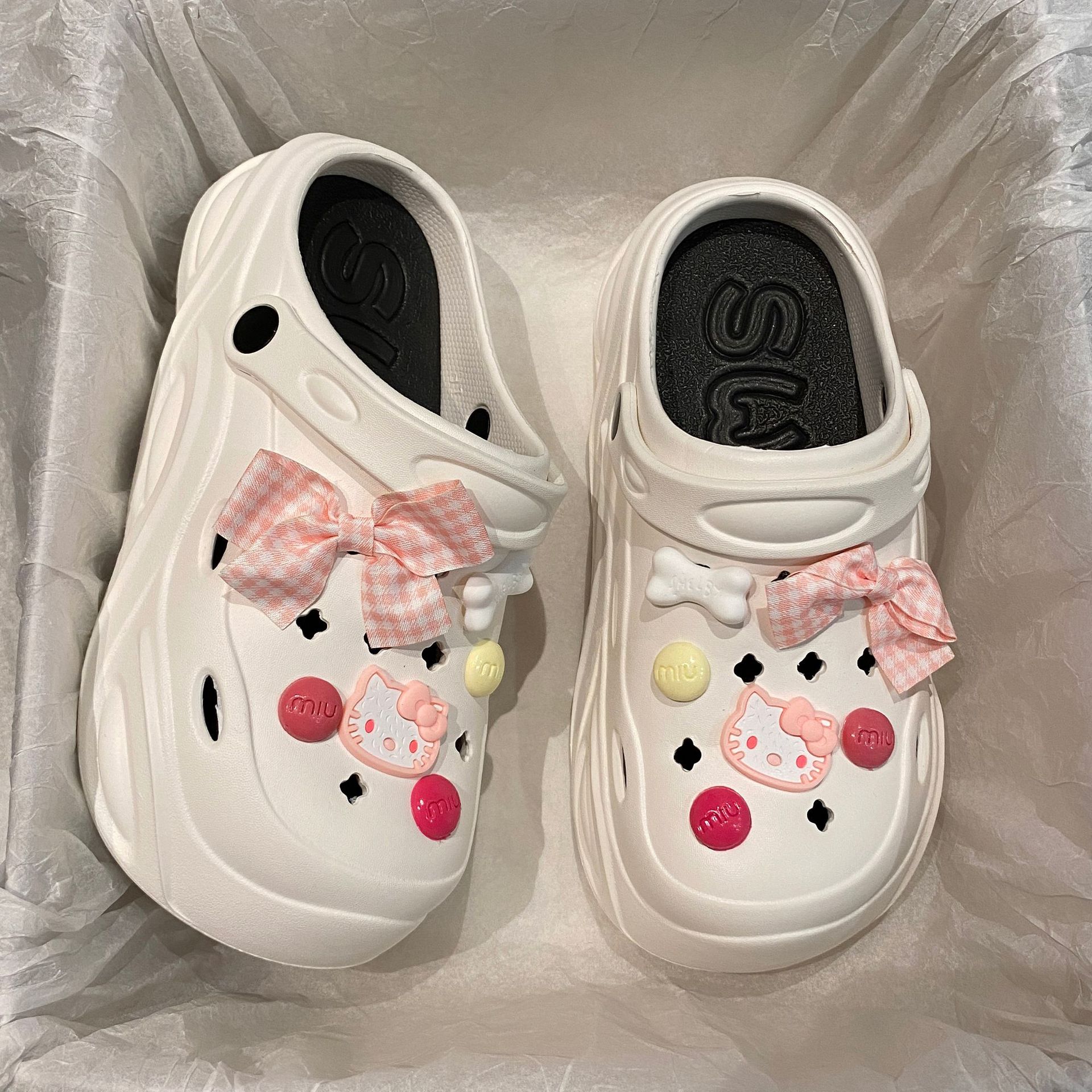 2024新型EVA厚い底が高くなった女性の夏の外で滑り止めを着て糞感を踏むサンダルDIY洞靴少女