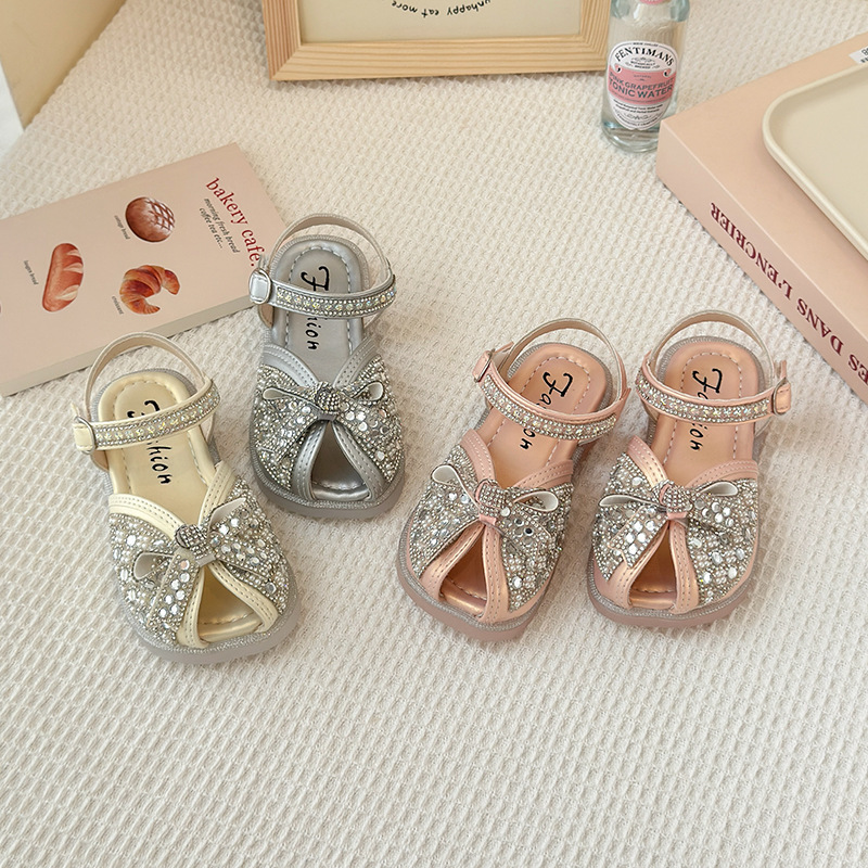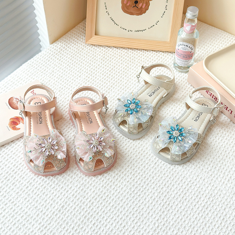 多用途でスタイリッシュな女の子のクリスタルシューズ 2025 夏の新しい子供のプリンセスシューズソフトソール滑り止めファッションベビーサンダル