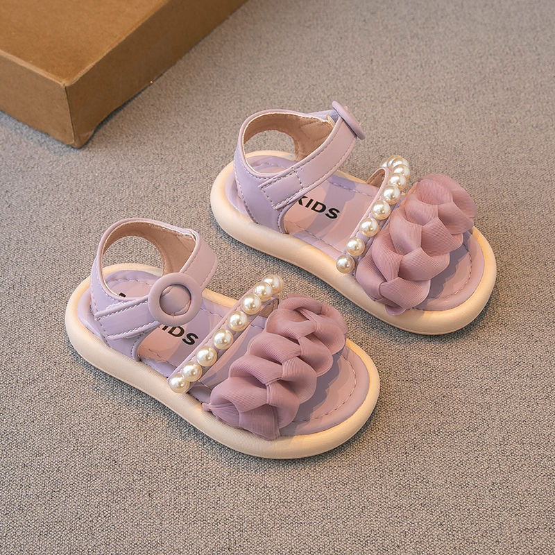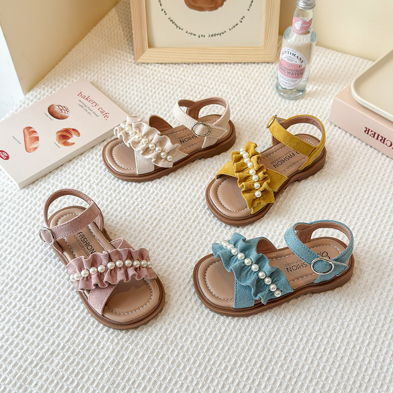韓国スタイルの女の子サンダル夏の新しいパール子供プリンセスシューズソフトソールベビーファッショナブルな女の子オープントゥビーチシューズ