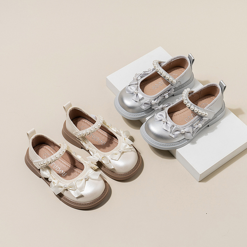 2025 春夏の新子供ファッション蝶結び真珠ソフトソール小さな革靴小中大子供韓国スタイルプリンセスシューズトレンディ
