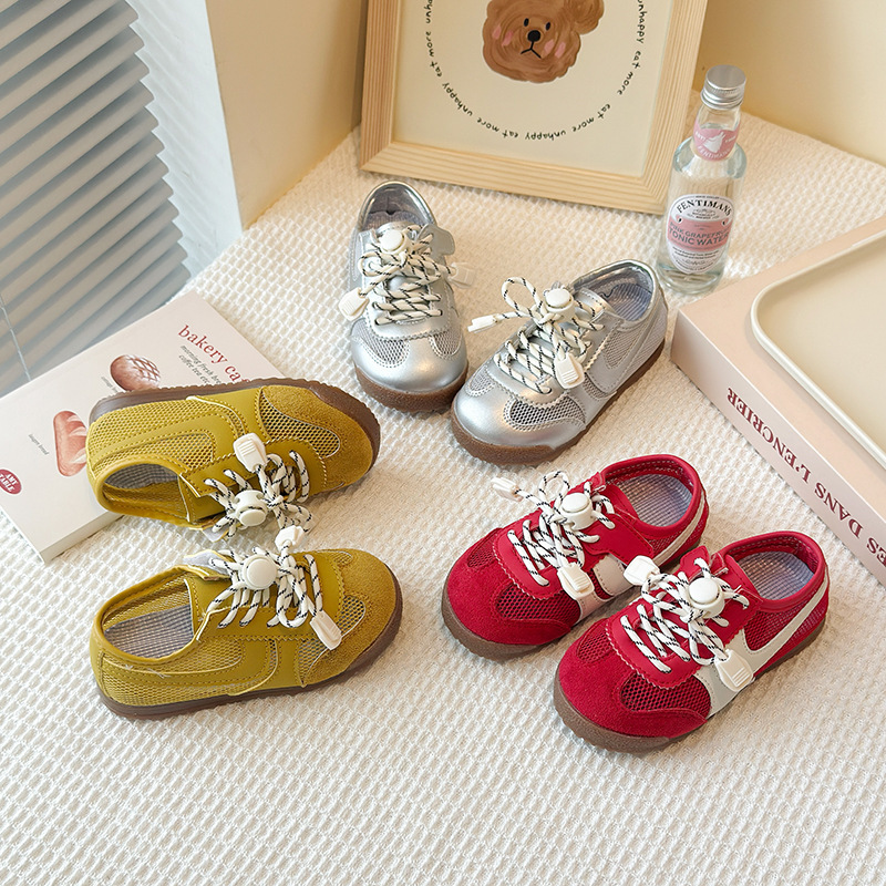 韓国版 2025 夏韓国版子供用シングルメッシュベルクロ道徳トレーニングシューズファッショナブルな通気性のあるカジュアルスポーツシューズ男の子と女の子用