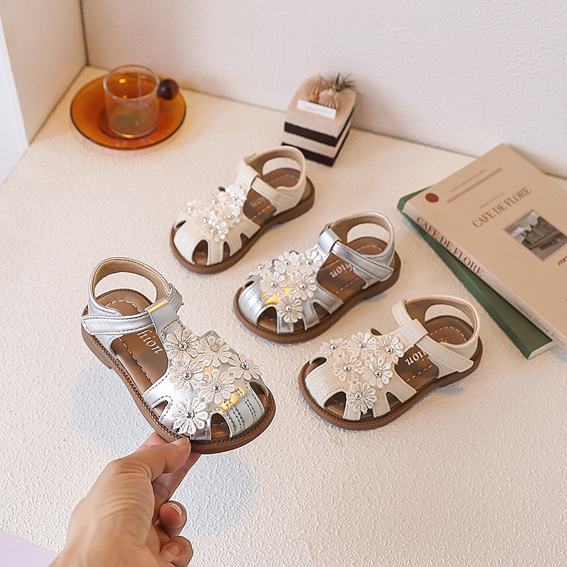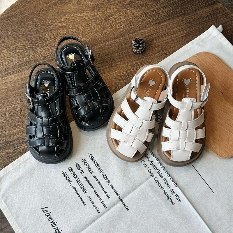 女の子の靴子供プリンセス包頭サンダル 2025 新しい夏スタイルベビー女の子ソフトソールローマンシューズ
