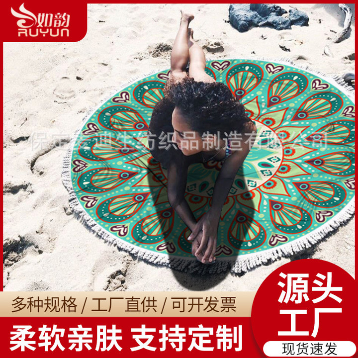 メーカー卸売りは活性プリント流蘇ビーチタオル極細繊維熱移動印刷ソフト吸水速乾を作る