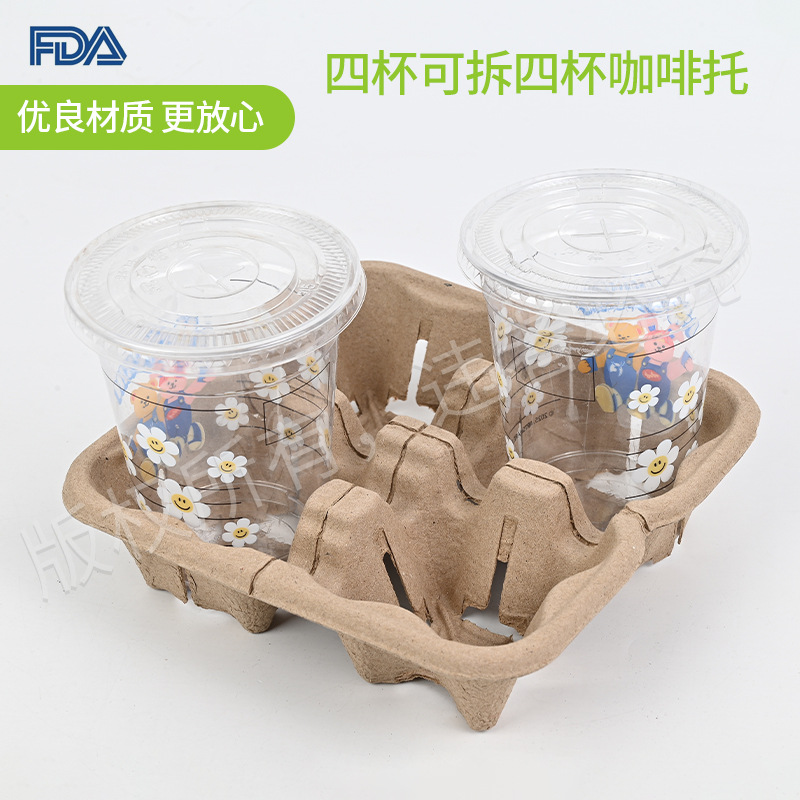 パルプ 4 カップ取り外し可能なコーヒートレイ 1 箱あたり 400 個のソースメーカー使い捨てミルクティーテイクアウトコーヒーカップトレイ