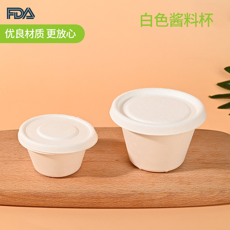 使い捨ての白いソースカップ2oz4oz厚い容量カップコーヒーミルクカップ蓋付きパルプ食器箱カップ