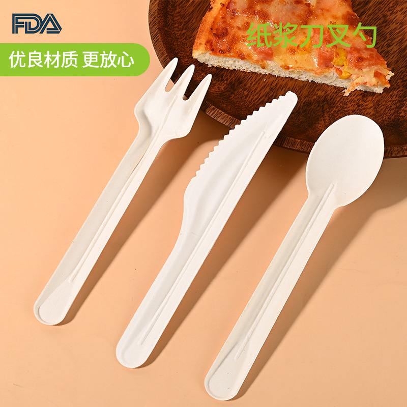 使い捨てパルプナイフフォークスプーンセットデザートアイスクリーム洋食ナイフサトウキビ中国式ナイフフォークスプーン食器用品