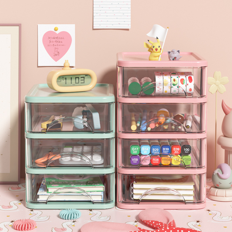 Ins文房具収納ボックスデスクトップ学生引き出し式筆筒キャビネットオフィス少女心髪飾り雑物収納キャビネット