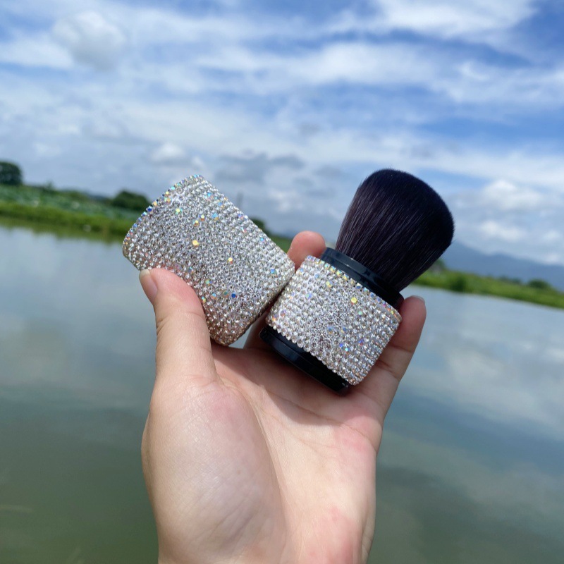 高颜値化粧ブラシは贅沢にドリルを入れて伸縮して化粧を直します。カバー付きの柔らかい毛がふわふわしています。