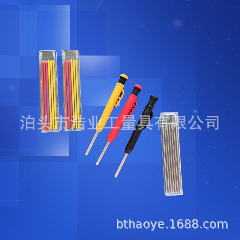 赤と黒のオレンジの3色の木工の深い穴のペンの3箱のセットのペンの芯の赤と黄色の混合は色の鉛の木工の線のペンを詰めます。