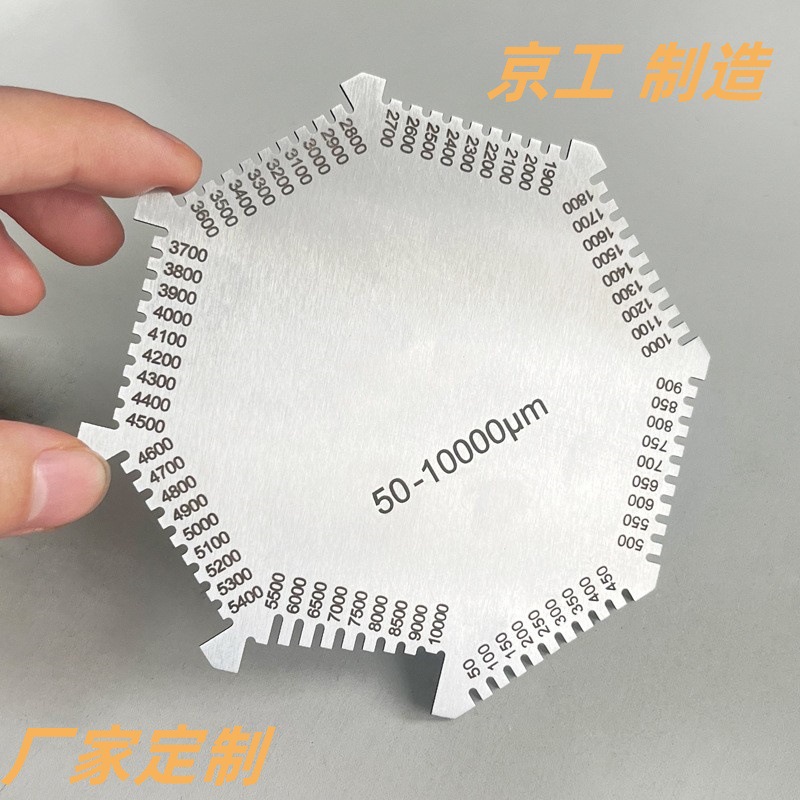 定湿膜櫛製造ペンキコーティング厚さ測定器櫛ゲージメーカーステンレス50-10000um八角形湿膜カード