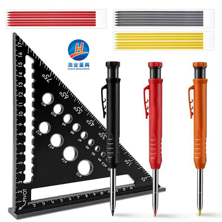 45度三角定規黒色アルミニウム合金7インチ3dベベル穴測定測定測定器機械鉛筆記号芯
