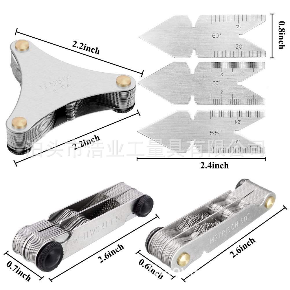 センターゲージ6点セット55 + 60 ° ゲージ58枚計量器具60度美製51pcねじ山ゲージ