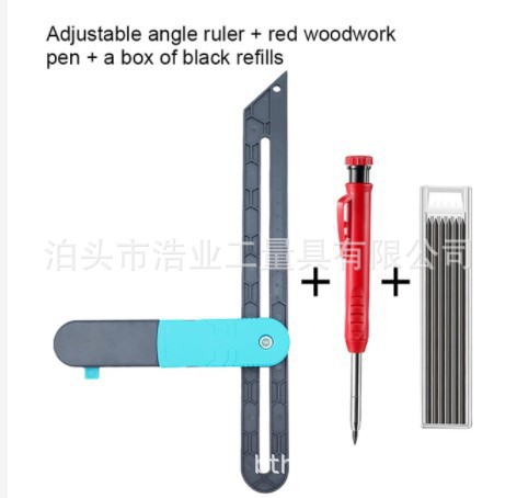 ロック付き角定規木工家具角度定規 + 深穴木工ペンセット木工線ツール
