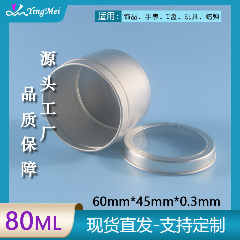 80グラム60*45シルバー開窓丸型天地アルミ缶キャンドル腕時計アクセサリーusb開窓包装金属ケース