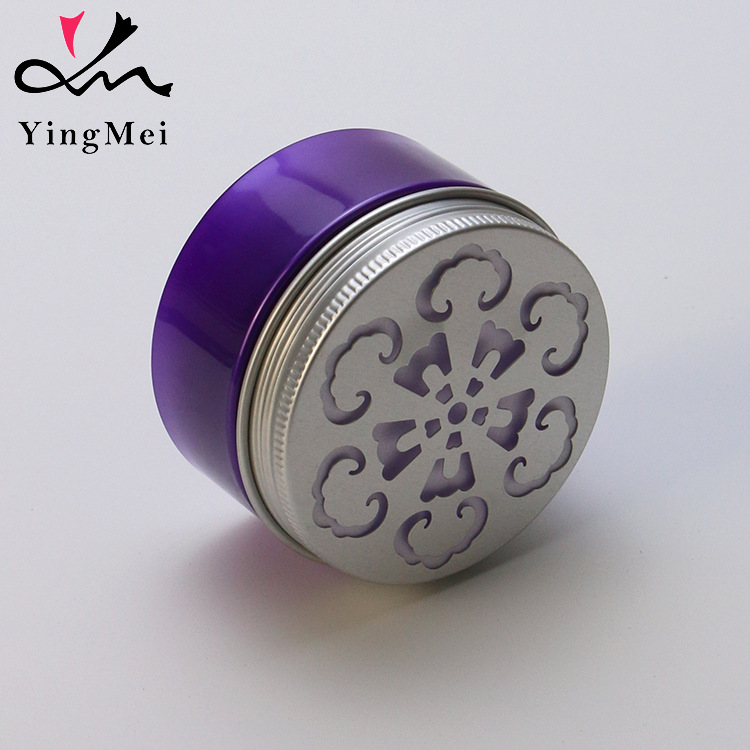 100ml pet半透明紫色ペットボトル透かし彫り銀色アルミ蓋化粧品分注ペットボトル