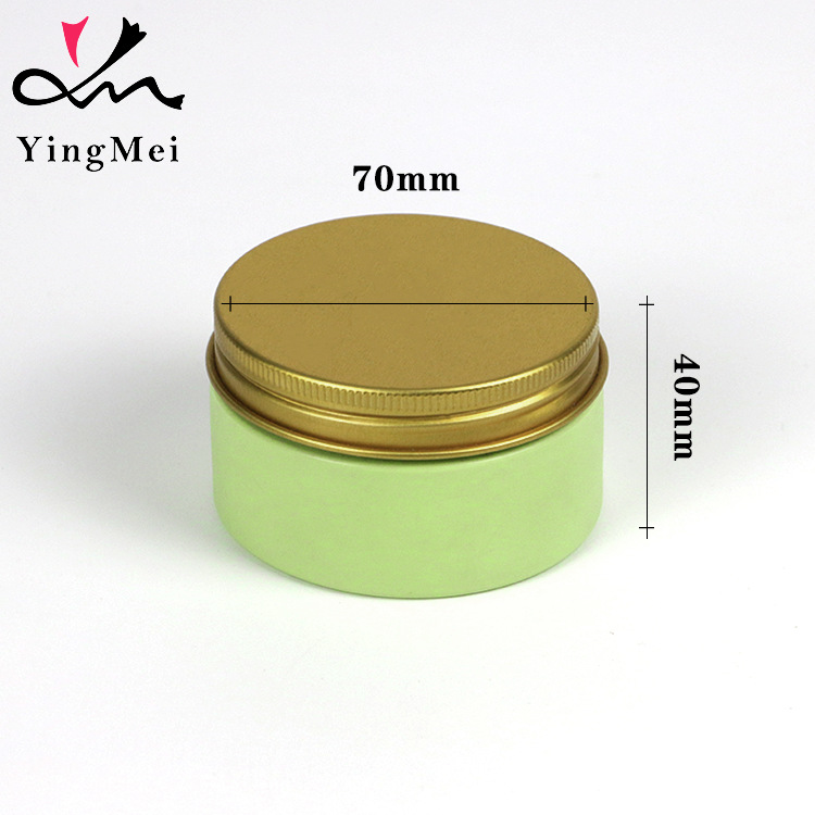 Petライトグリーンプラスチックボトル70x40mmゴールドアルミキャップねじ広口化粧品ボトル乳液薬クリーム瓶