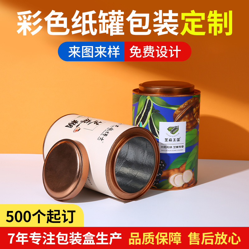 雑穀紙缶包装箱ブリキ蓋丸薯粉防湿筒缶食品茶葉紙缶をカスタマイズできる