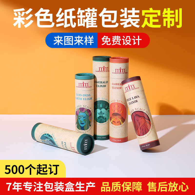 ソースメーカー紙缶精油包装箱化粧品円筒印刷ロゴクロスボーダーカラーケース白紙筒カスタム