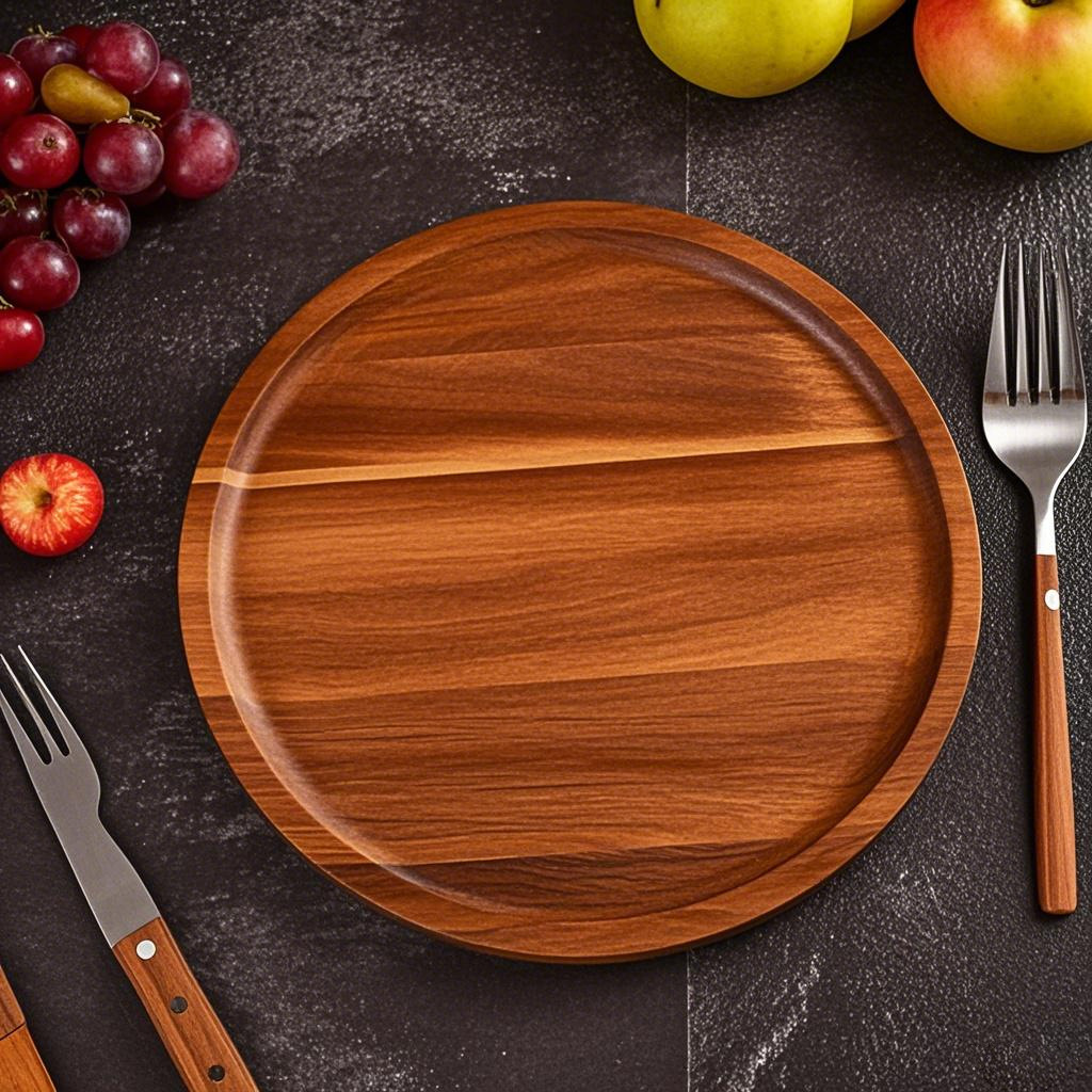 アカシア木製トレイコーヒー、パン、スナック、フルーツ、食事トレイ、家庭用木製ディナープレート、丸い無垢材卸売