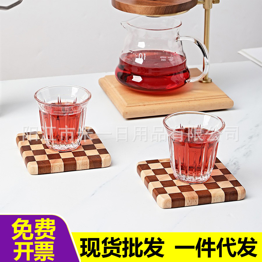 実木のコースターのチェス盤の格はアカシアの木の水のコースターのサブネットの赤い創意の茶托の滑り止めの工場の卸売りの現物をつなぎ合わせます。