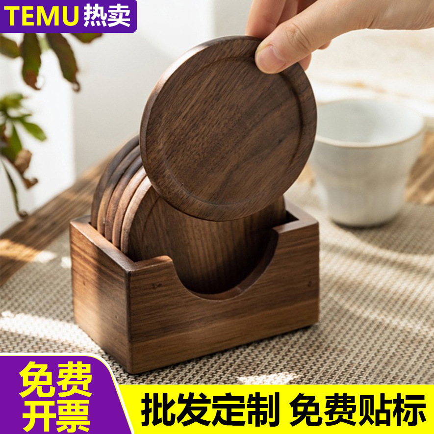 創意的な木製の木のコースターのロゴの彫刻は茶道の杯を注文してお茶を支えます。