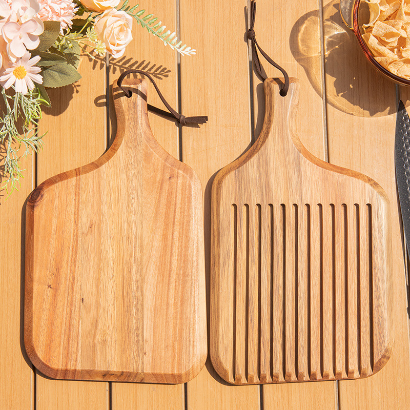 アカシアの木のパンの板の取っ手のピザの板のまな板のトレーの実木のステーキの板のピザの皿の原木のまな板