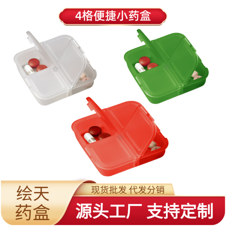 メーカー直販可印字丸型四分格薬箱創意携帯薬箱プラスチック楕円4格カプセル