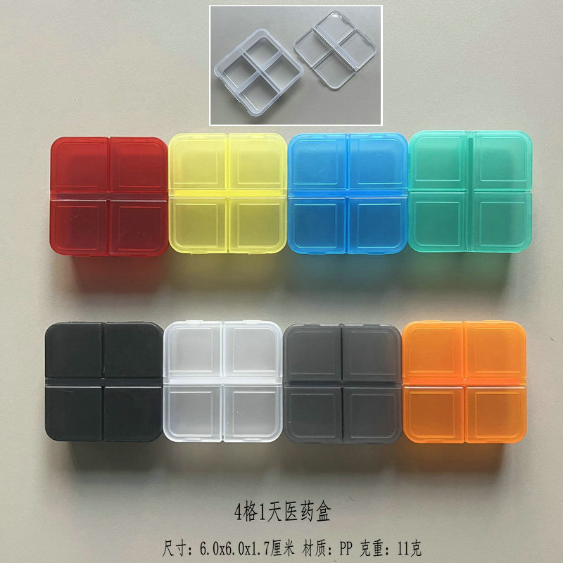 よく売れているアメリカ市場の4格1日薬箱食品級材料4格薬箱正方形薬箱便利薬箱