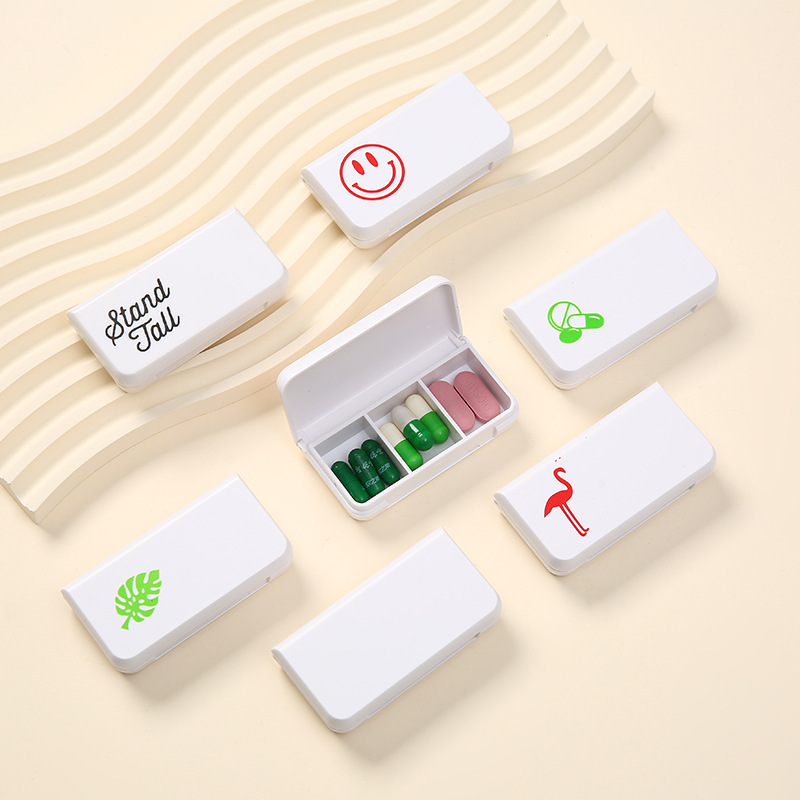 携帯三格薬箱ミニ収納箱朝と晩の錠剤箱広告薬箱メーカー現物印LOGO